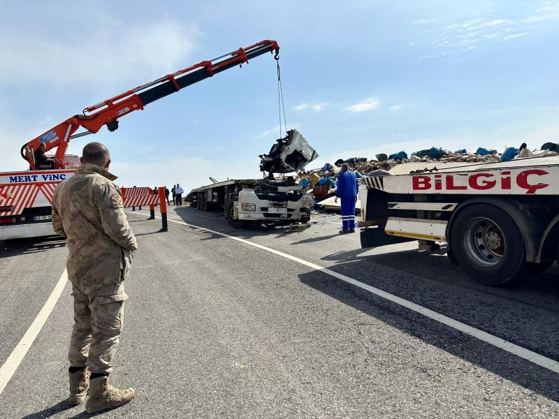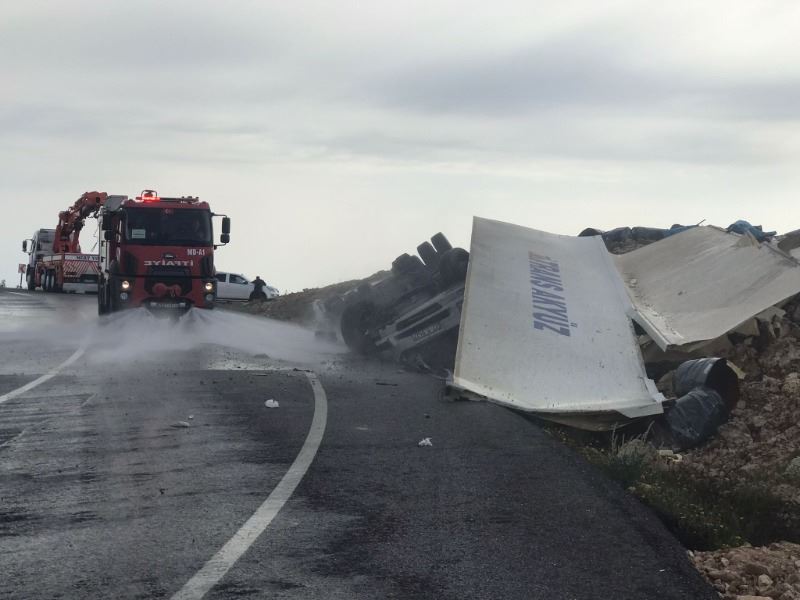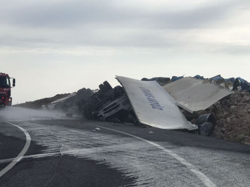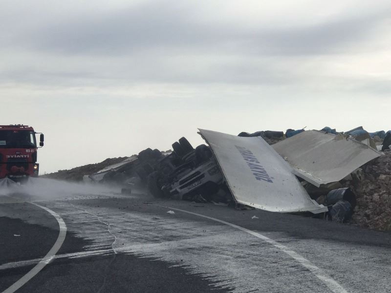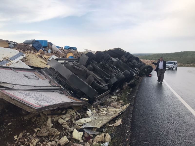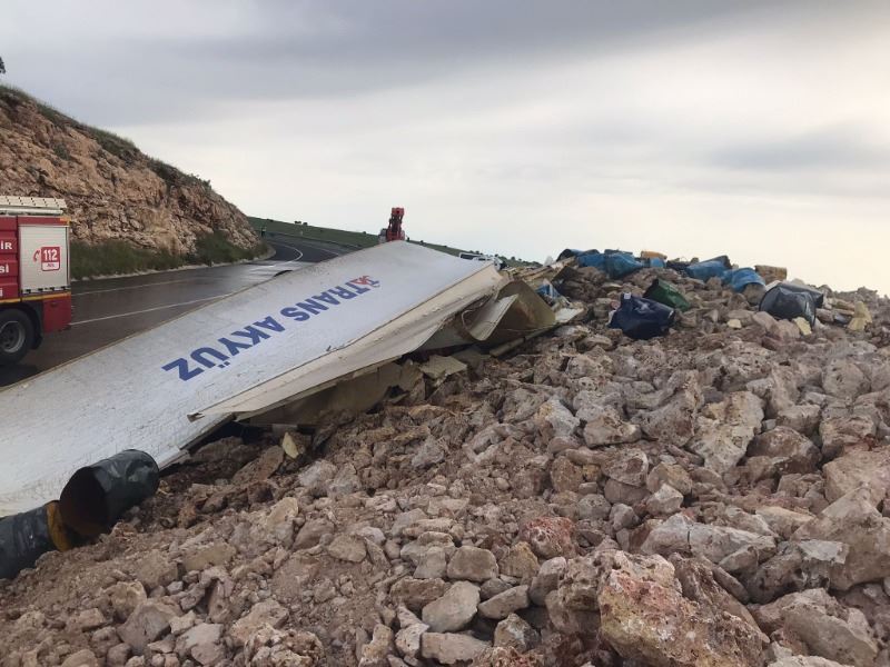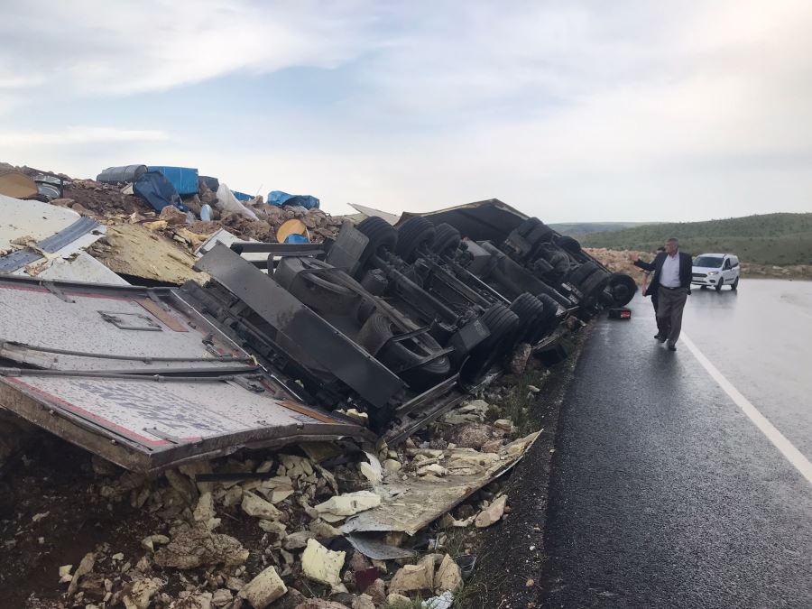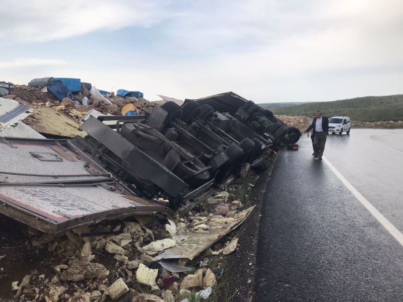 Nusaybin - Midyat Karayolunda devrilen TIR, hurdaya döndü: 1 yaralı