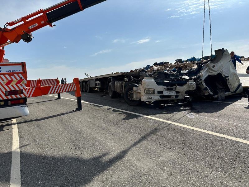 Günün aydınlanmasıyla vinç ve çekici yardımıyla hurdaya dönen TIR, bölgeden kaldırıldı. Yaklaşık yarım saat kapalı kalan karayolu, TIR'ın kaldırılmasıyla tekrar trafiğe açıldı.