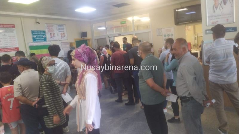 Nusaybin Devlet Hastanesi Acil Servisine, hasta çocuklarının tedavisi için giden A.D,. İsimli vatandaş, hastaların çoğunluğu Kovit-19 olduğu, Baş ağrısı, Mide bulantısı, Kusma, Yüksek ateş gibi hastalıklardan acil servise tedavi için gelmiş. Ancak 2 doktorun görev yaptığını ve yetersiz kaldığı için böyle bir kalabalık oluştuğu söyledi. A.D,. Hastalar, bu salgında tedbirli ve mesafeyi korumaları gerektiğini dile getirildi.