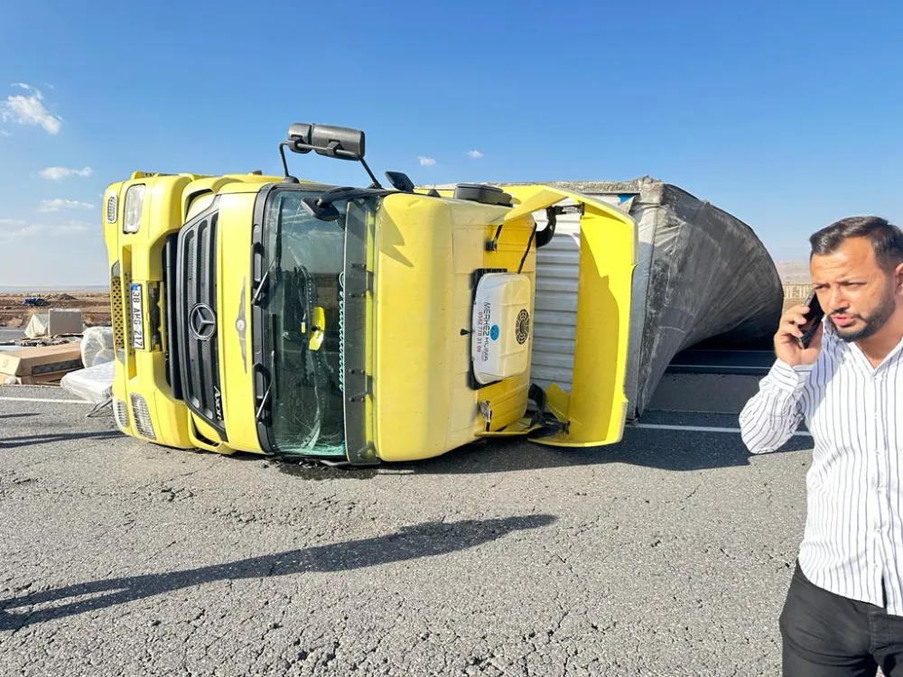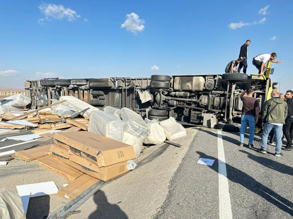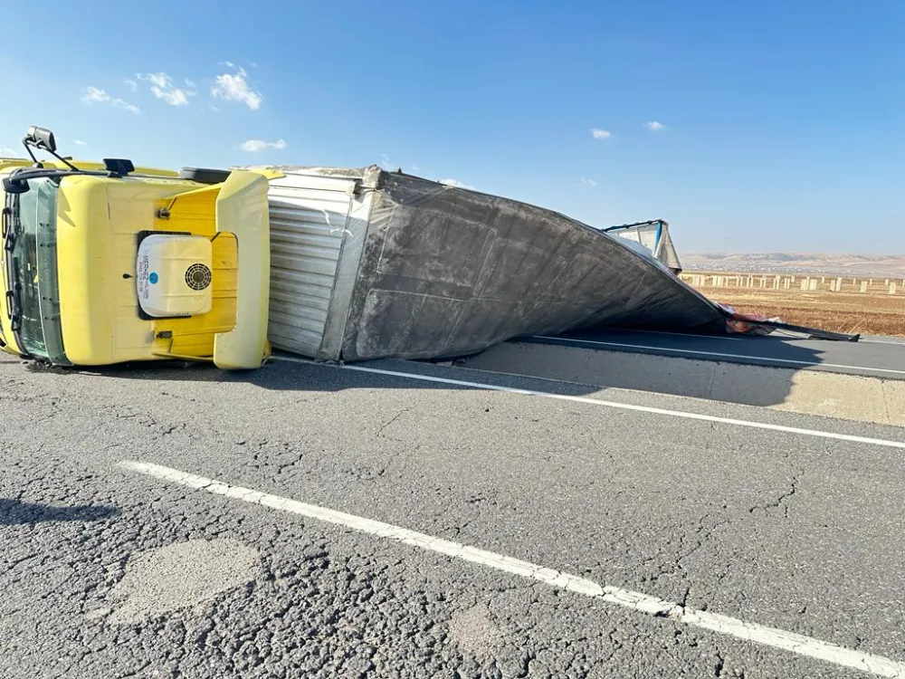 Nusaybin ilçesi İpekyolu’nda TIR, devrildi, 1 yaralı