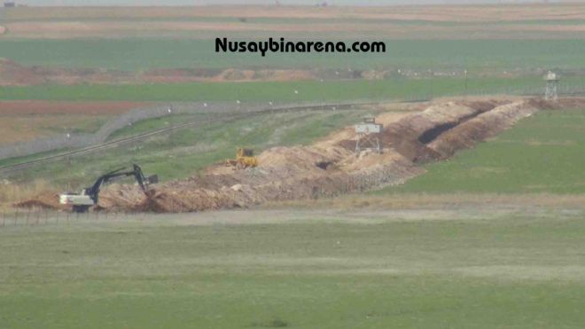 Sınırın Türkiye tarafında yapılan hendeğin yaklaşık 150 metre uzunluğunda, 1 buçuk metre genişlik ve derinliğinde olduğu görüntülendi. Kazma çalışması Nusaybin ilçesine doğru geliyor.