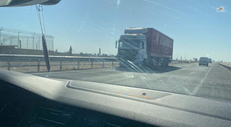 Sürücüsü ve plakası belirlenmeyen TIR ile seyir halindeyken iki şerit olan yolda önündeki aracı solarken yolun tek şerite dönmesi nedeniyle öndeki araç sola kırması sonucu arkadan gelen TIR, bariyerlere çarparak karşı şeride geçti. Şans eseri karşıdan gelen araç olmayınca faciyadan dökülmüş oldu.