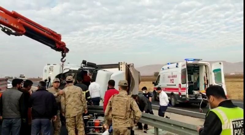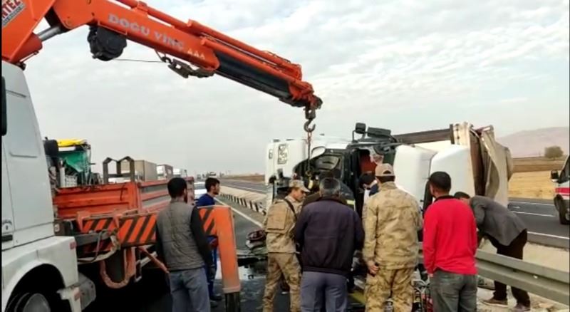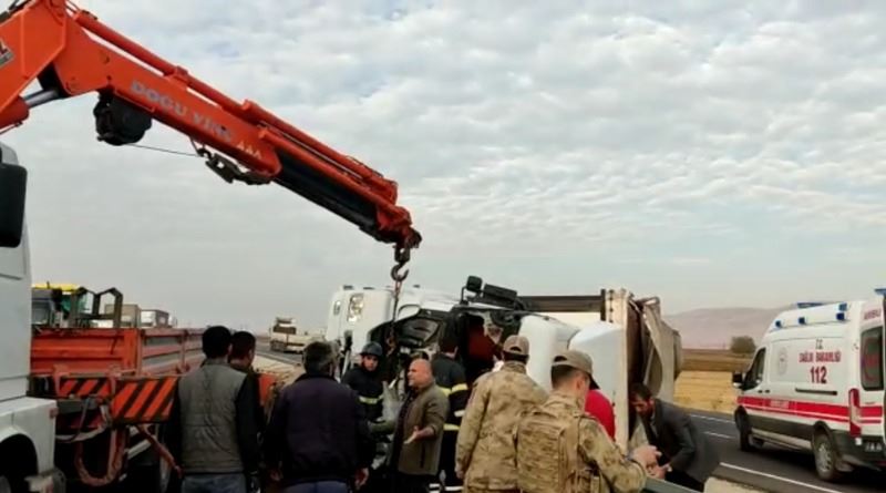 Nusaybin yönünden Cizre yönüne giden Ahmet Çoban yönetimindeki 73 FA 316 plakalı TIR ile seyir halindeyken direksiyon hakimiyetini kaybederek yolun orta refuj bariyerlerini çarparak devrildi. Kazada sürücü Ahmet Çoban araçta sıkışarak yaralandı.