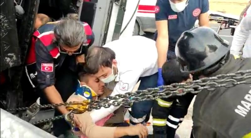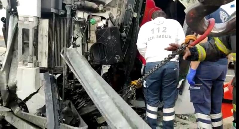 Bölgeye gelen Arama Kurtarma ekipleri, sürücünün sıkıştığı araçtan kesici aletlerle demirler kesilerek kurtardı