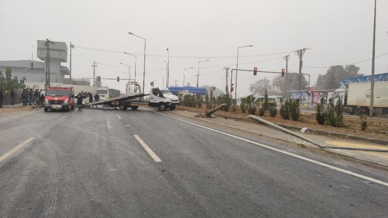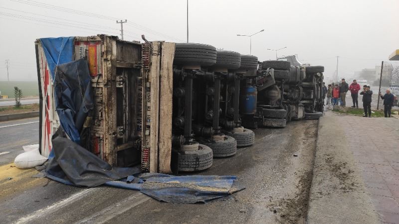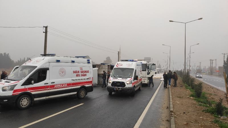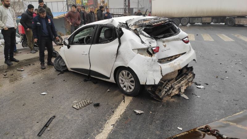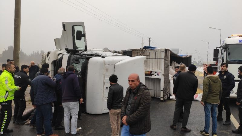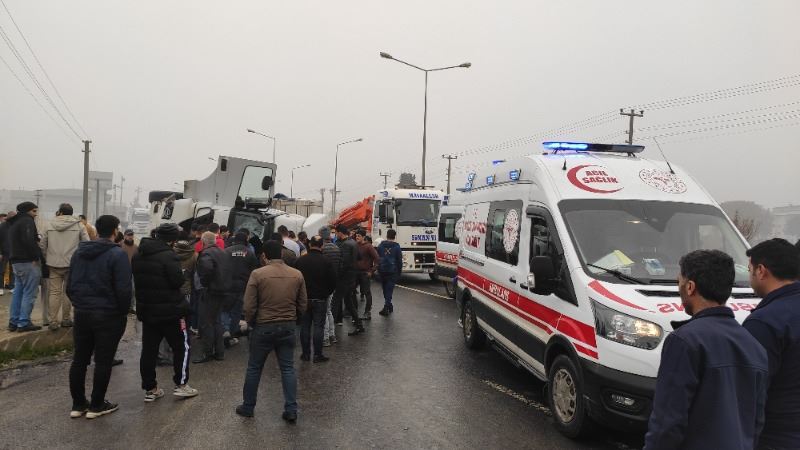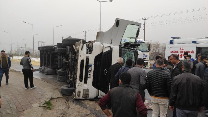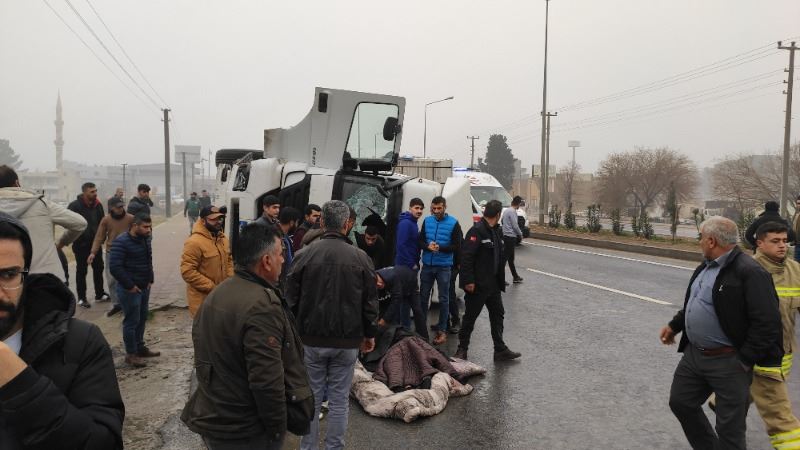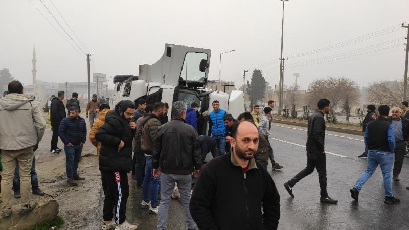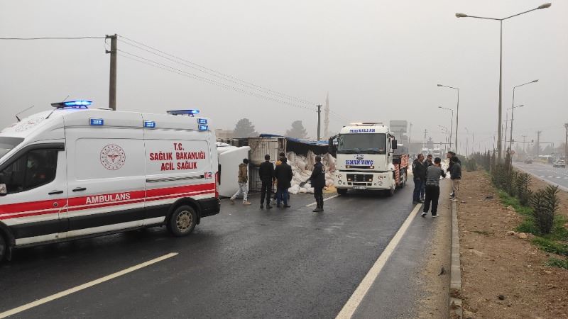 Sürücülerin ismi öğrenilmeyen 63 ABA 652 plakalı, hayvan yemi çuvalları yüklü TIR ile 47 AAY 714 plakalı otomobile çarparak devrilen hayvan yemi yüklü TIR, sürüklenerek yaklaşık 100 metre sonra durabildi. Kazada yaralanan 3 kişi çevredeki vatandaşlar tarafından araçlardan çıkarıldı.