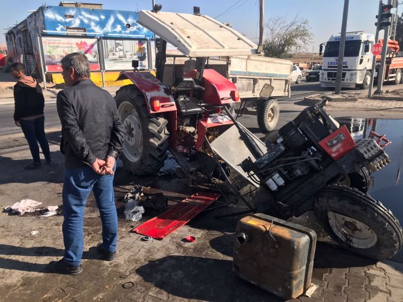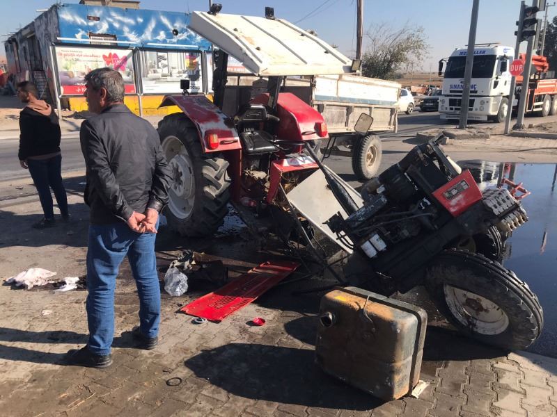 Kullanıcıların ismi ve plakası öğrenilmeyen TIR ile traktörün karıştığı trafik kazasında traktör ikiye bölünerek hurdaya dönmesi sonucu sürücüsü yaralandı.