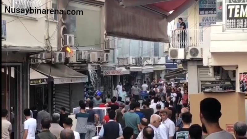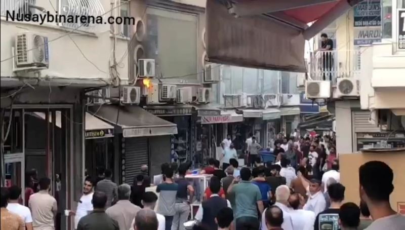 Nusaybin Kaçakçılar çarşısında alev alan elektrik panosunu esnaf su kovasıyla söndürdü