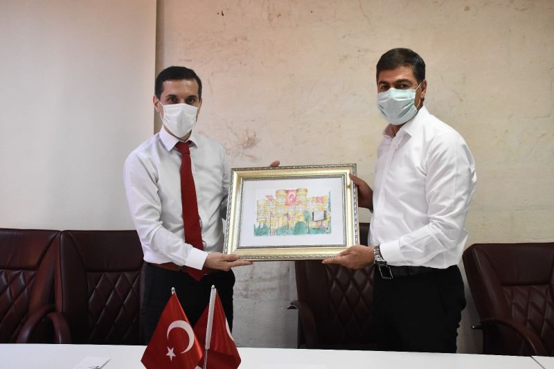 Toplantısının sonundan Nusaybin Kaymakamı ve Belediye Başkan vekili Temizkan, Mardin Milletvekili Demirkaya’ya, karakalem ile çizilmiş Nusaybin Belediye Binası resmini hediye etti.