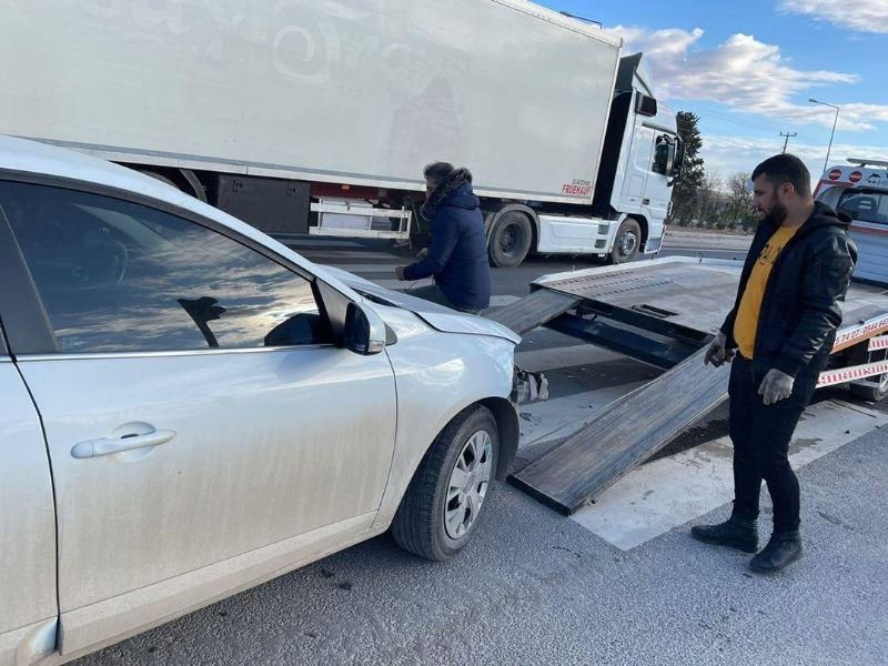 Sürücülerin ismi ve plakası öğrenilemeyen Tır ile otomobilin çarpışması sonucu araçlarda maddi hasar meydana geldi.