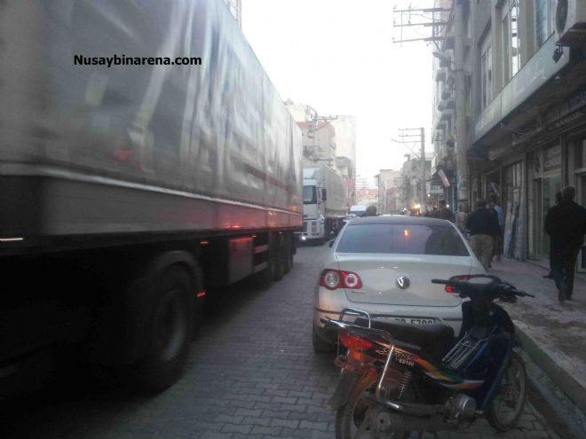 Nusaybin ilçe merkezinde gündüz saatlerinde ki yoğun trafik sıkıntısına rağmen tır geçti.