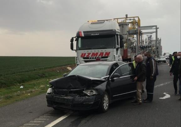 Ahmet AKKUŞ/Mardin’in Nusaybin ilçesi İpekyolu’nda geniş yük taşıyan tırlar, kazaya neden oldu 3 otomobil hasar gördü.