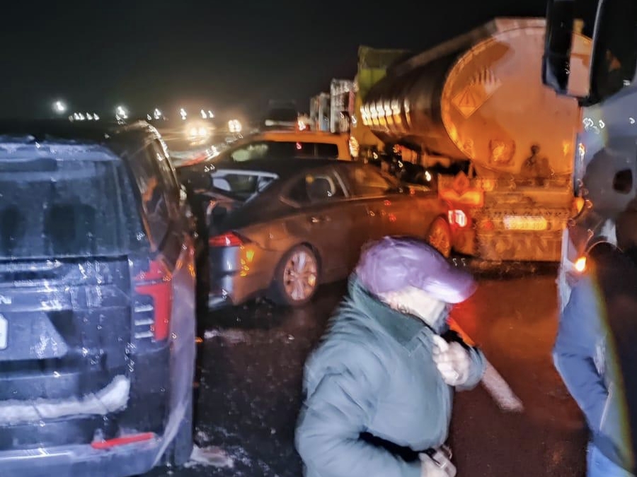 Haber:Ahmet AKKUŞ/-Mardin’in Nusaybin ilçesinde kar yağışı ve don nedeniyle kayganlaşan uluslararası İpekyolu üzerinde akşam saatlerinde tanker, TIR ve otomobillerin karıştığı 7 araçlık zincirleme trafik kazası meydana geldi.