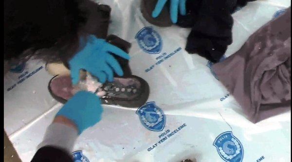 Spor çantalarında oluşturulan Özel bölmelere gizlenmiş şekilde zaman ayarlı bomba düzeneği, Şahsın giymiş olduğu ayakkabı tabanı ile ayakkabı sayası arasına yerleştirilmiş plastik patlayıcı madde, Şahısların giymiş oldukları montlar üzerinde, oluşturulan Özel bölmelere gizlenmiş şekilde plastik patlayıcı madde ve zaman ayarlı bomba düzeneği, Şampuan kutusu ve jöle kapları içerisinde gizlenmiş plastik patlayıcı madde ele geçirilmiştir.