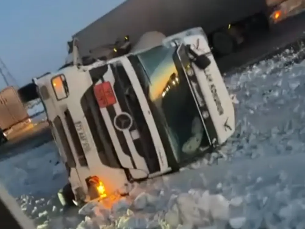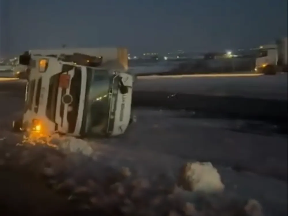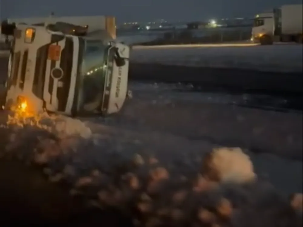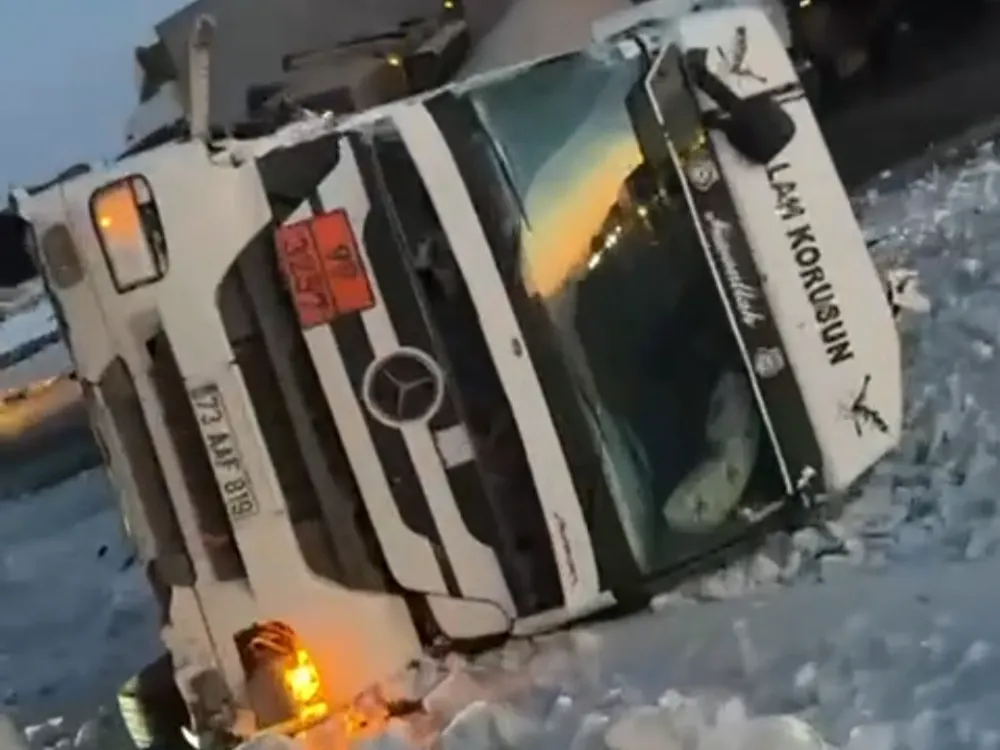 Sürücüsünün ismi öğrenilemeyen 73 AAF 819 plakalı tanker, gizli buzlanma nedeniyle direksiyon hâkimiyetini kaybederek yol ortasındaki su tahliye kanalına devrildi. Kazada tanker sürücüsü hafif şekilde yaralandı.