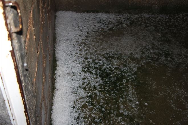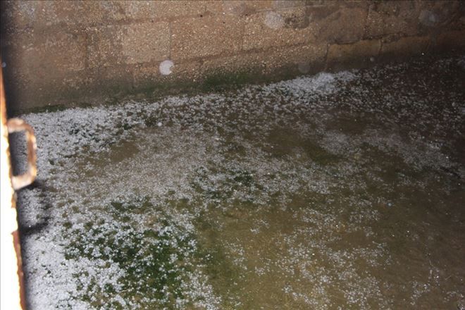Mardin´in Nusaybin İlçesi´nde akşam saatlerinde 10 dakikalık dolu yağışı hayatı olumsuz etkilerken birçok evin bodrum katı ve avlusu su bastı.