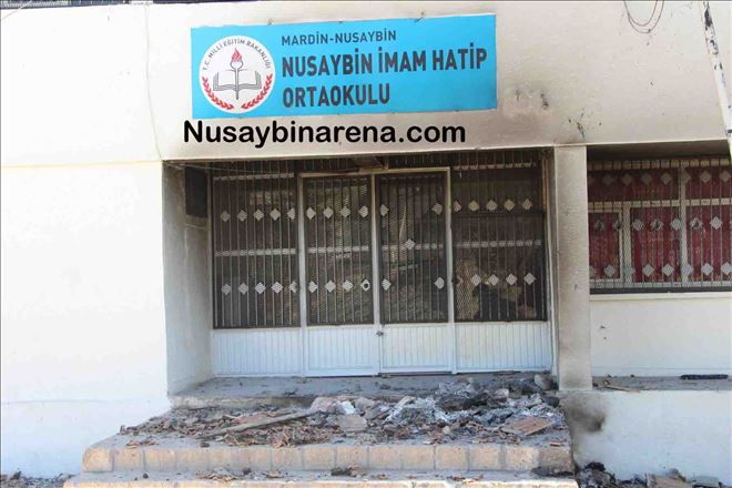 Dün gece Nusaybin Yenişehir Mahallesi Çağ çağ caddesi üzerinde bulunan Nusaybin İmam Hatip Ortaokulu ve hemen yanında bulunan Selahaddin Eyyübi Suriyeliler okulunda şiddetli bir patlama sonrası yangın çıkmıştı. Bölgede çatışma çıkmıştı. Yanan okular müdahaleye giden Mardin Büyükşehir Belediyesine bağlı Nusaybin İtfaiye ekipleri güvenlik nedeniyle müdahale edemedi. 2 okulda çıkan yangın sabaha karşı kendi kendine söndü. Sabah iki okulun hasarı ortaya çıktı. Okulu yakmaya gelenler arka bahçe duvarını delerek okul kapıları büyük levyelerle açılarak çatı katını ateşe vermiş. Ayrıca ilçede tahrip edilen 5 okulun öğrencileri okullarına gidemedi. Bu okulların öğrencileri başka okullara nakledildi ancak okulların uzak olması nedeniyle binlerce öğrenci güvenlik ve maddi sıkıntıdan dolayı okula gidemiyor.-Haber-Ahmet Akkuş