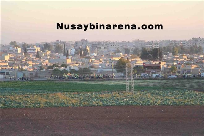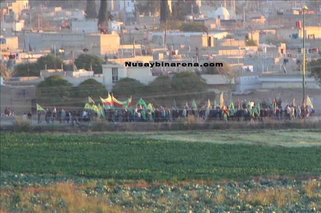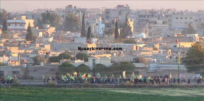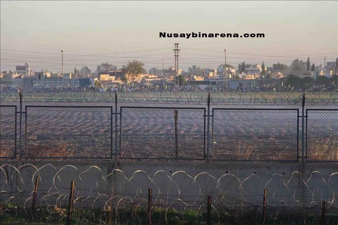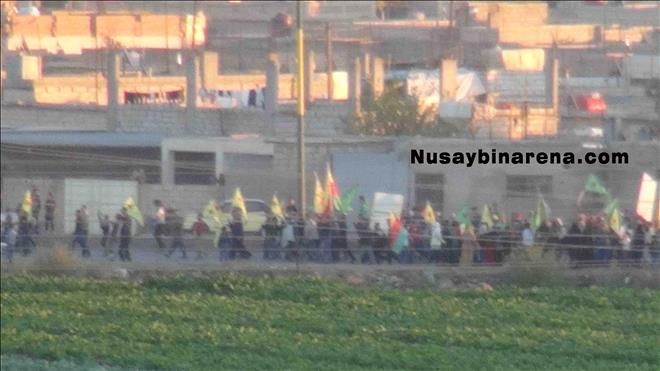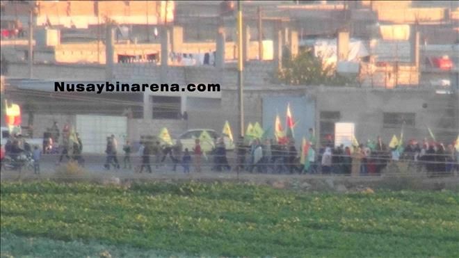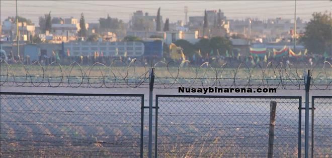 Öte yanda Nusaybin´de devam eden sokağa çıkma yasağı nedeniyle Suriye´nin Kamışlı kentinde yaşayan Kürt kökenli yurttaşlar mayınlı sınır bölgesine yakın cadde üzerinde elerinde PYD-YPG bayraklarıyla slogan atarak Nusaybin´e destek verdi.-Haber-Ahmet Akkuş