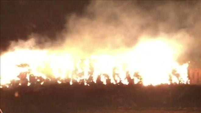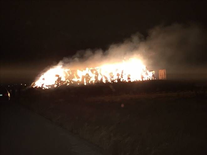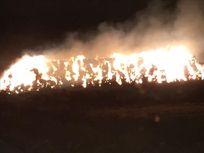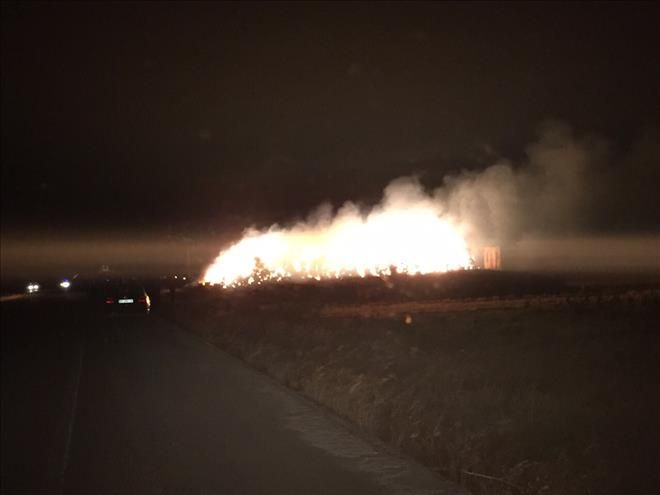Nusaybin´e bağlı Yolbilen (Arbete) mahallesinde Diyarbakırlı Şehmus buğday ekinleri biçme zamanında topladığı yaklaşık 500 ton samanı paketleyip batı ilere satmaya götürecekti. Ancak dün akşam saat.08.00 sırlarında bilinmeyen nedenlerden dolayı 500 ton samanın bulunduğu alanda yangın çıktı. Çıkan yangını gören köylüler Mardin Büyükşehir Belediyesi İtfaiye ekiplerine haber verdi. Haber verilmesi üzerine yangın bölgesine giden 4 itfaiye aracıyla yangına müdahale etti.Ancak havanın şiddetli rüzgar olması nedeniyle samanlar bir türlü sönmedi.Ekiplerde yangın bölgesine bitişik zeytinlik bahçesine sıçramaması için bugünde yangın bölgesinde nöbet tutarak zaman zaman yangına müdahale etti bildirildi.-Haber-Ahmet Akkuş