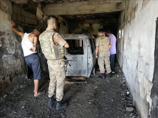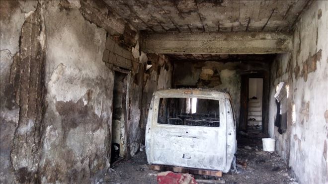 Nusaybin´de alev alan aracın iskeleti kaldı