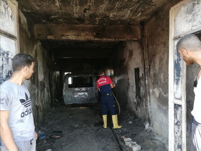 Mardin´in Nusaybin ilçesinde park halinde alev alan araçtan geriye demir iskeleti kaldı. İtfaiye ekiplerin kapasitede müdahalesiyle, ailenin bulunduğu eve alevler sıçramadan söndürüldü.