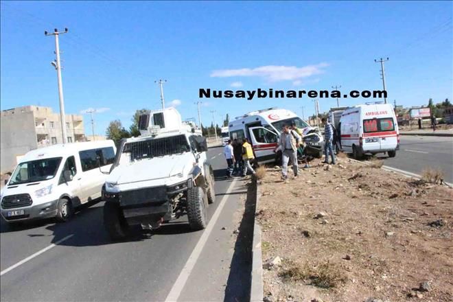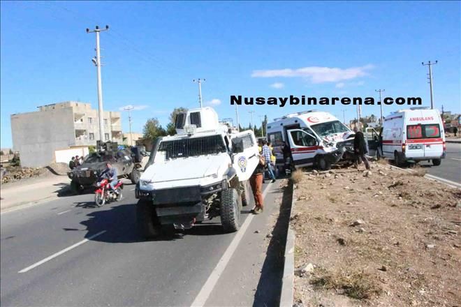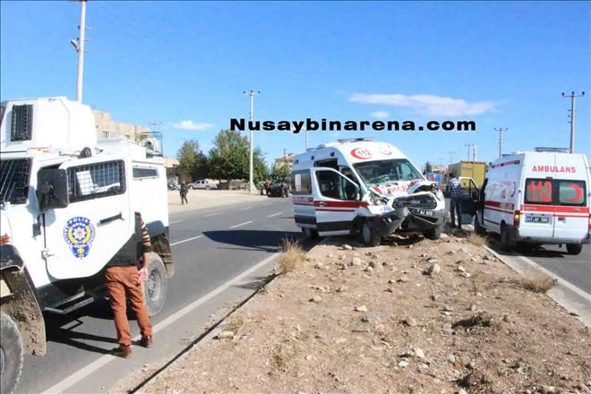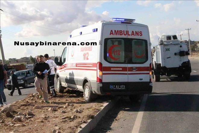 Nusaybin İpek yolu üzeri 2.nolu sağlık ocağı mevkilerinde Otogar yönünden Midyat kavşağı istikametine giden 112 Acil Servis Ambulansı, önünde hareket halindeki Özel Harekât Polis ekibine ait zırhlı araca çarptı. Kazada Ambulansın içerisinde bulunan 3 sağlık personeli hafif şekilde yaralandı. Yaralılar 112 Acil Servis Ambulansıyla Nusaybin devlet hastanesi acil servisine kaldırıldı.