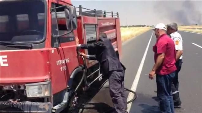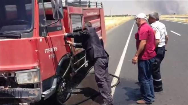 Nusaybin ilçesinde anız yangınları bitmek bilmiyor. Yangına giden itfaiye aracı hararet yaparak yolda bozuldu.