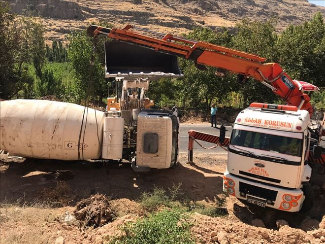 Mardin´in Nusaybin ilçesinde virajı alamayan beton mikseri devrildi, sürücü yaralandı.