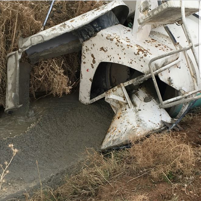 Mardin´in Nusaybin ilçesine bağlı Tepeüstü köyünde su kanalına devrilen beton mikseri sürücüsü yaralandı.