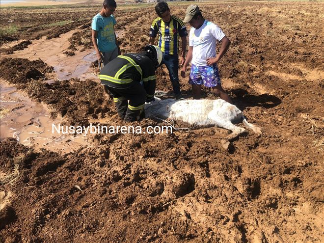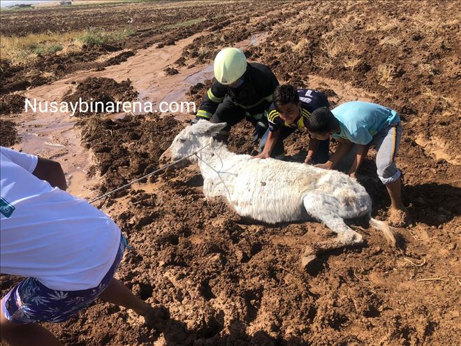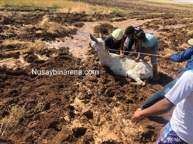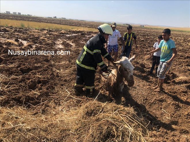 Nusaybin´e bağlı Çatalözü  köyü yakinlardaki sulak bir arazinin içinden geçen eşek çamura saplanarak mahsur kaldı. Köylüler tarafından çamura saplanmış halde bulunan eşeği köylüler, kurtarmaya çalıştı ancak başarılı olamadılar. Köylüler, yardım için Mardin Büyükşehir Belediyesine bağlı Nusaybin itfaiye ekiplerine haber verdi.