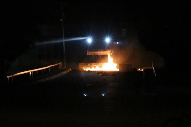 Bölgeye gelen polis ekipleri biber gazı ve basınçlı su ile göstericilere müdahale etti. YDG-H ve toplanan gruplar da polis zırhlı araçlarına kalaşnikof tüfek, ses bombası, taş ve Molotof kokteyliyle karşılık verdi. YDG-H üyeleri, Devlet hastanesi bahçesindeki Ziraat ve Garanti bankaların ATM para çekme makinelerine Molotoflu saldırıda bulundu. Yapılan saldırı sonucu iki ATM kullanılamaz hale geldi. Atılan gaz ve Molotof kokteyllerinden bir evin damı ve bahçesinde yangın çıktı. Atılan aşırı biber gazından hastalar hastane acil servisinde mahsur kaldı. Olaylar devam ediyor.-Haber-Ahmet Akkuş