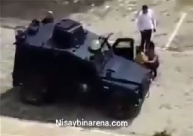 Bu sırada çocukların bir bölümü kaçarken, sarı tişörtlü ve 6 - 7 yaşlarında olduğu tahmin edilen bir çocuğu yakalıyor. Polisin küçük çocuğu zırhlı aracın yanına kadar götürdüğü kameralara yansıyor.