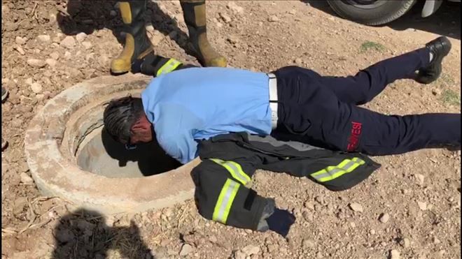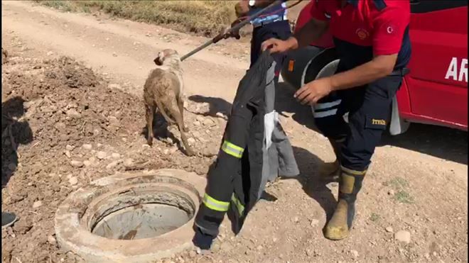Mardin´in Nusaybin ilçesinde logar çukuruna düşerek mahsur kalan köpeği itfaiye ekipleri kurtardı.