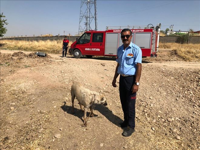 Nusaybin´de, çukurda mahsur kalan köpek itfaiye kurtardı