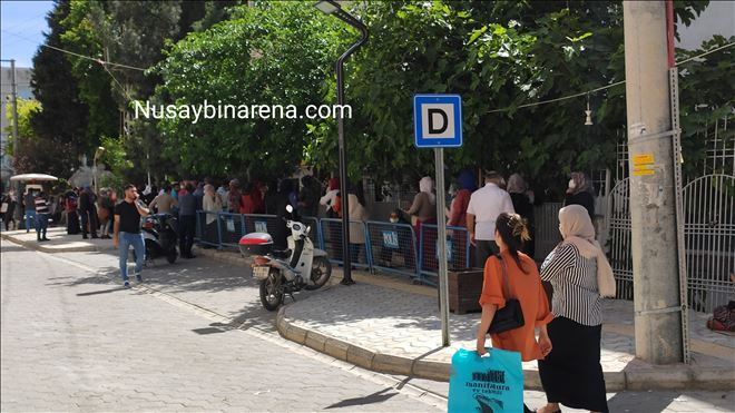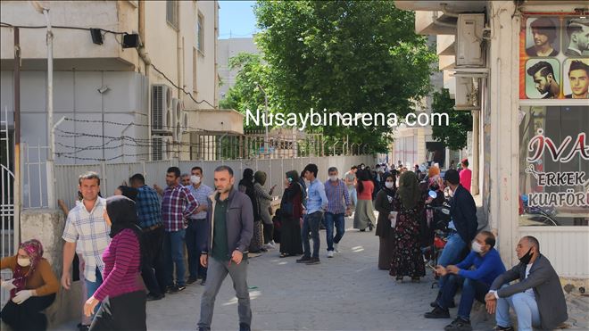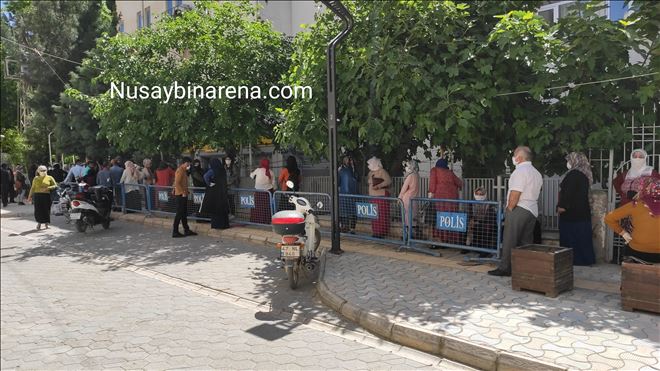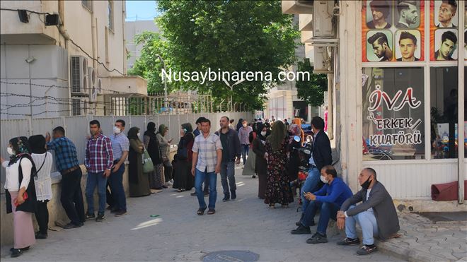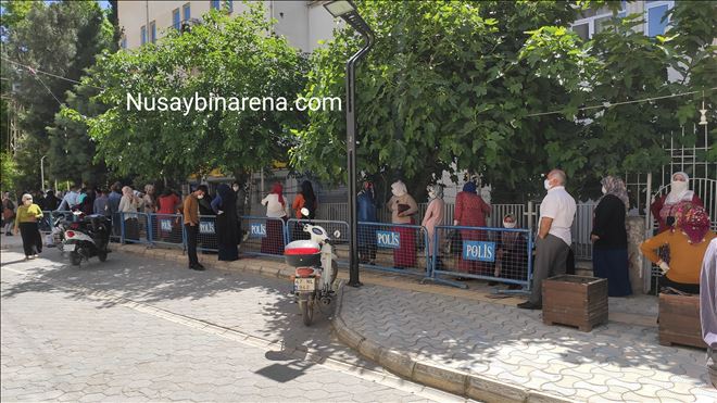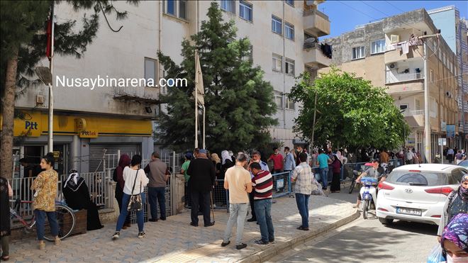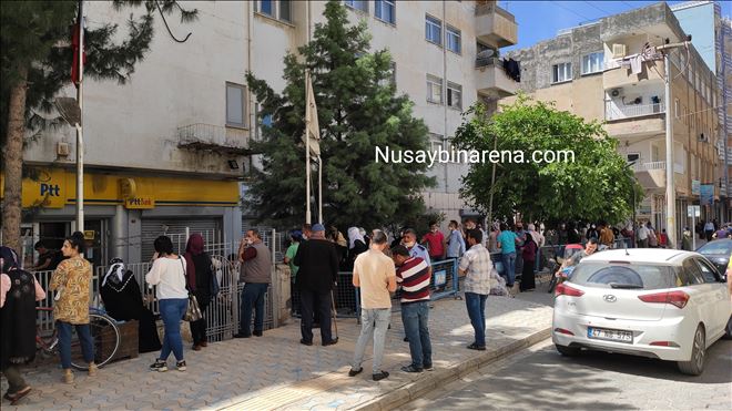 Nusaybin´de Aile, Çalışma ve Sosyal Hizmetler Bakanlığı´nca ihtiyaç sahiplerine yapılan, elektrik faturalarının yardımı 100-150 TL, sini karşılaması, bin liralık nakdi, yardım ve diğer işlemleri gerçekleştirmek için PTT şubesine gelenler, sosyal mesafeye uyması nedeniyle uzun kuyruk oluşturdu.