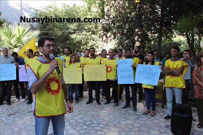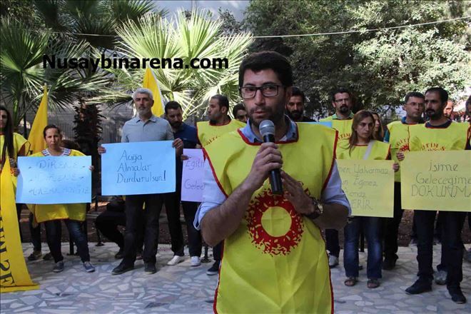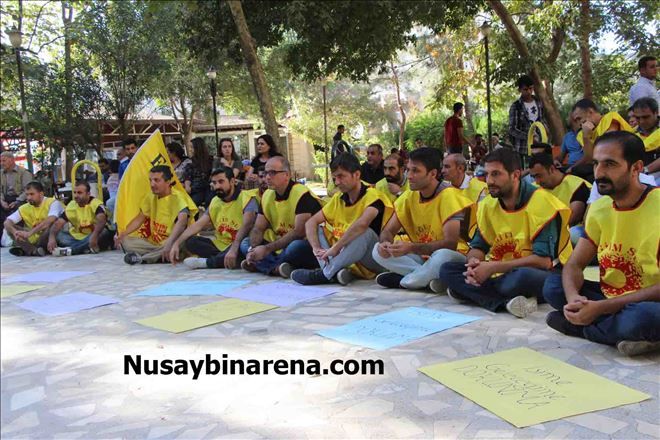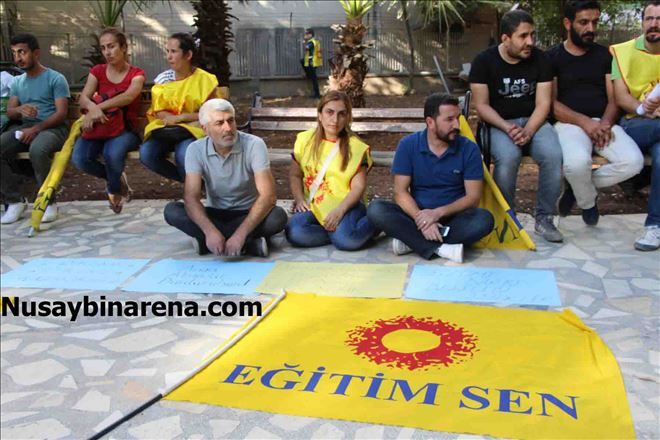Nusaybin´de Eğitim-sen´den açığa alınan öğretmenler için 2 saatlik oturma eylemi yaptı