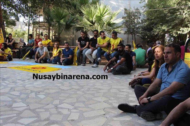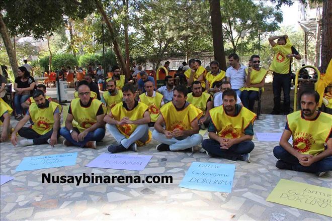 Mardin´in Nusaybin ilçesinde Eğitim-sen, açığa alınan öğretmenler için bugün okullara verdiği dilekçeden sonra parkta oturma eylemi yaptı.