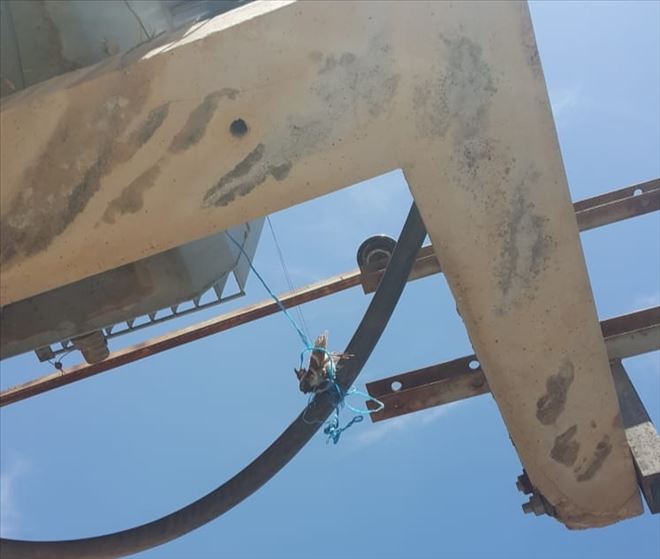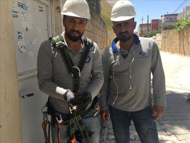 Elektrik trafosu tepesinde asılı duran ve mutfak havalandırması önünde asılı kalan kuşları gören vatandaşlar, Nusaybin DEDAŞ arıza ekibi ve Nusaybin itfaiye ekiplerine haber verdi.