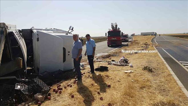 Nusaybin´de Elma Yüklü Tır Devrildi, 1 Kişi Yaralı