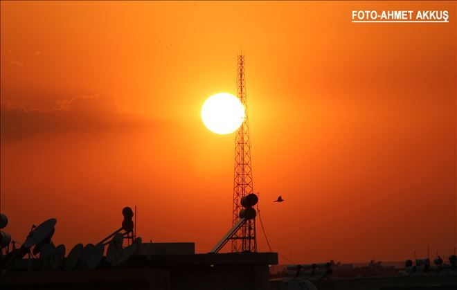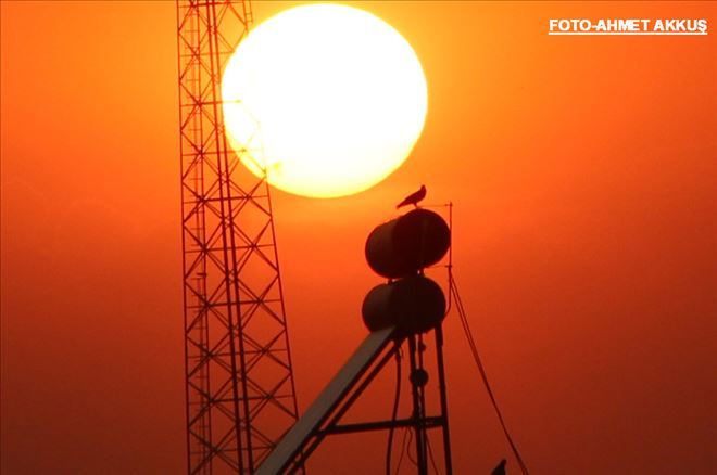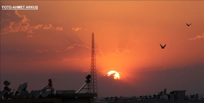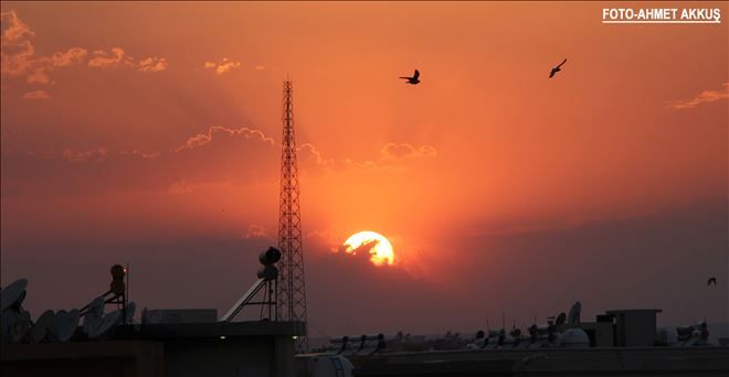Akşam saatlerinde gün batımı sırasında güneşin gökyüzünde oluşturduğu manzara izleyenleri hayran bıraktı. Bulutların arasında oluşan turuncu ve kırmızı renklerin yanı sıra kuşların da güneşin önünde kanat çırpması, manzaraya ayrı bir güzellik kattı. Manzarayı görenler, telefonlarıyla kaydetti.