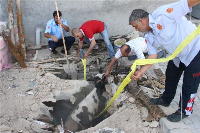 Nusaybin Çağlar Mahallesi Midyat yolu üzerinde bulunan bir evin Fosseptik çukuruna inek düşmesinden sonra ,Ev sahibi Nusaybin İtfaiyesi Gurup amirliğine haber verdi. Haber verilmesi üzerine Arama Ve Kurtarma ekibi olay yerine giderek Çukura düşen ineği kurtarması inek sahibi Abdulbari Tekin´i ve çevredeki yurttaşları sevindirdi.