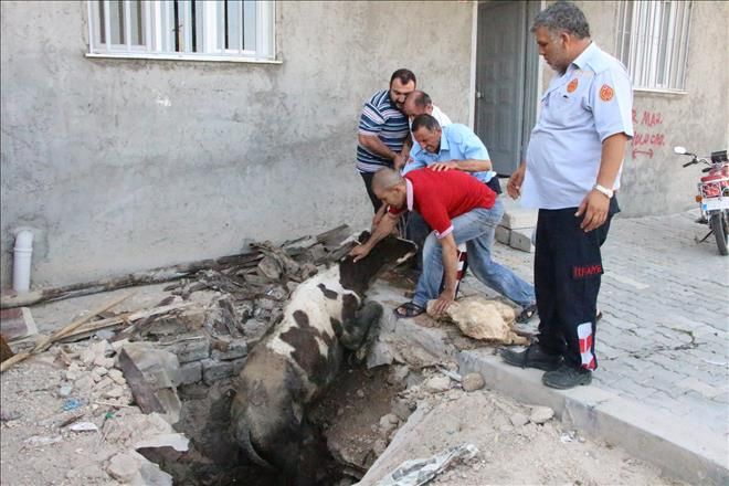 Nusaybin ilçesinde Fosseptik çukuruna düşen inek için İtfaiye ekiplerine haber verildi.İneğini fosseptik çukurunda gören yurttaşlar, Nusaybin belediyesine bağlı itfaiye ekipleri İneği fosseptik çukurunda çıkartarak sevindirdi.