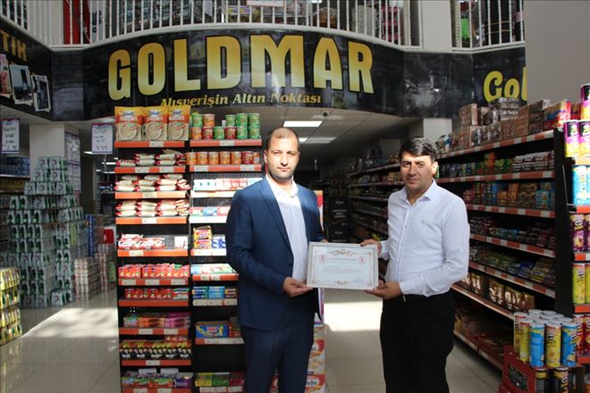 Ömer Özel, GOLDMAR Market Sahibi Murat Kadam´a ilçeye yaptığı yatırımdan dolayı teşekkür belgesi verdi.