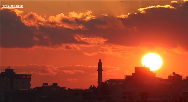 Nusaybin´de sabah saatlerinde etkili olan yağmur, öğleden sonra yerini güneşli havaya bıraktı. Akşam saatlerinde gün batımı sırasında güneşin gökyüzünde oluşturduğu manzara izleyenleri hayran bıraktı. Tarihi Zeynel Abidin Camisi minaresi tepesinde güneş ile minare hoş bir görüntü oluştururken, o anlar objektife yansıdı.