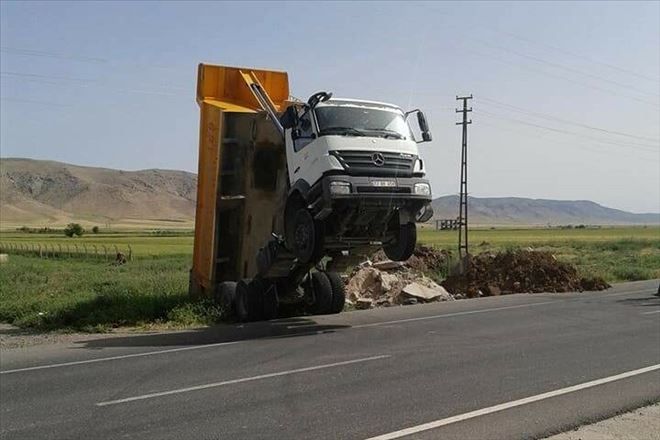 Mardin´in Nusaybin ilçesinde bir harfiyat kamyonu yol kenarına molozları dökerken şaha kalktı.