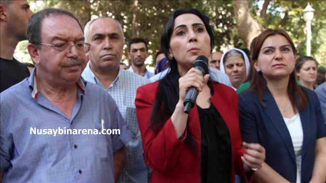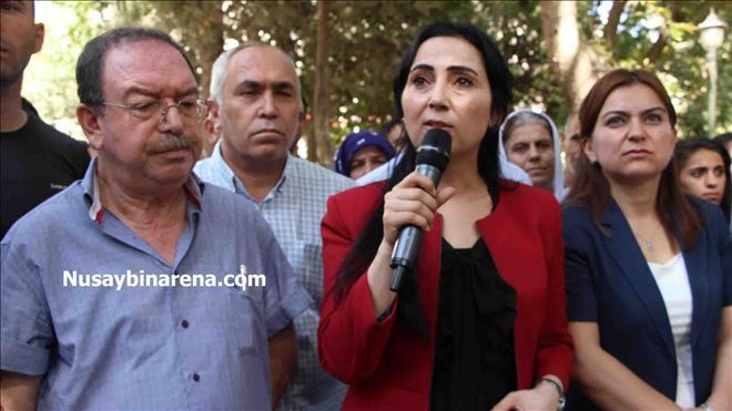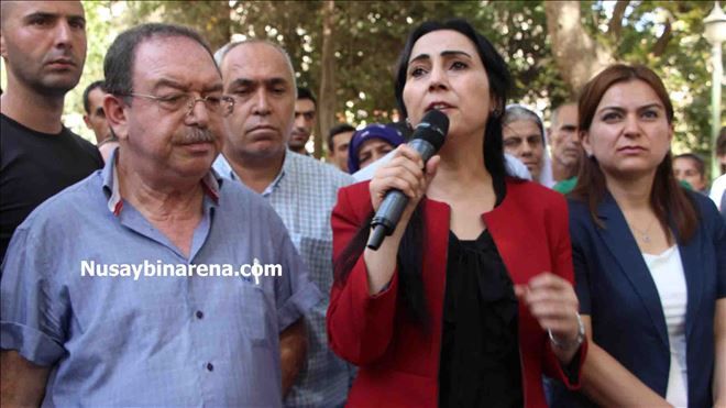 Konuşmasına yaptığı ziyaretler başlayan Yüksekdağ: "Bugün Nusaybin´de ablukalar döneminde yaşamını yitirmişlerin ailelerini ziyaret ettik" dedi.