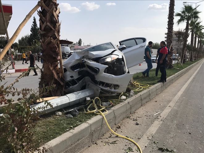 Mardin´in Nusaybin ilçesinde, Mardin yolu Caddesinde orta refüjdeki ağaç ve ışıklandırma direğine çarparak hurdaya dönen otomobil sürücüsü yara almadan kurtuldu.