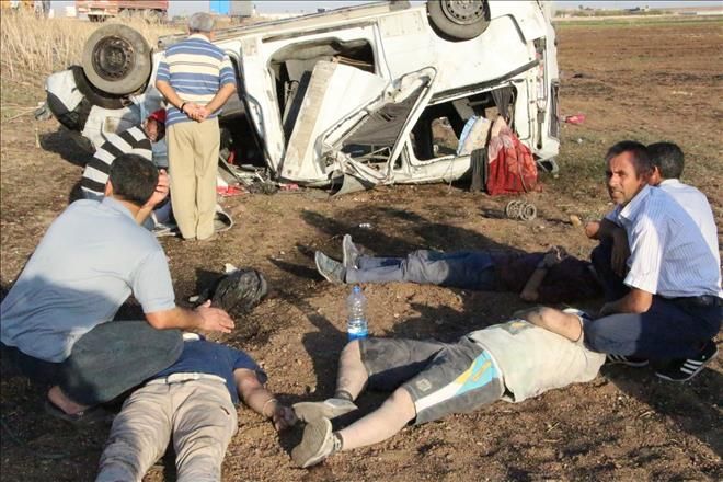 Nusaybin´de Iraklıları Taşıyan Minibüs Devrildi 12 Kişi Yaralı