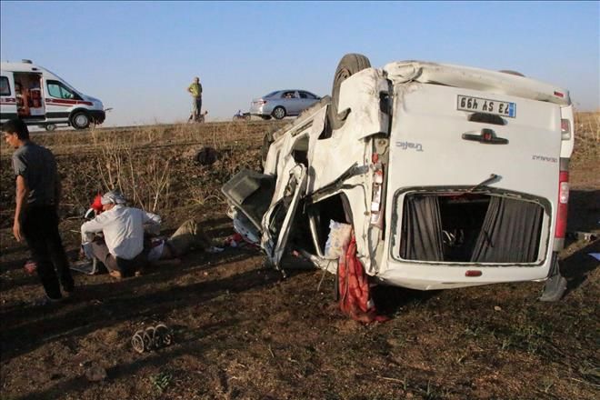 Nusaybin ilçesi ipek yolu üzerinde Iraklıları taşıyan minibüs devrildi 12 kişi yaralandı.