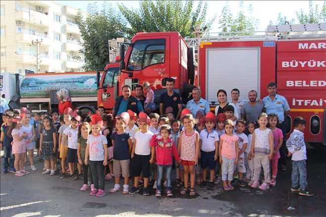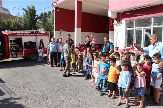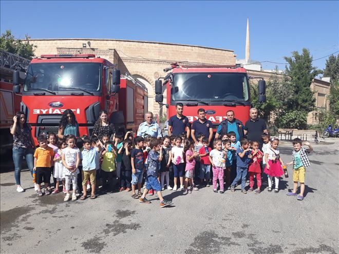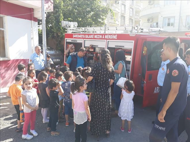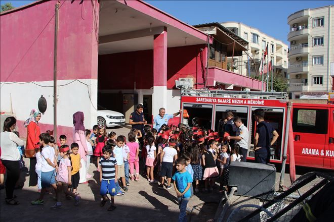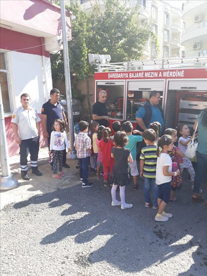 Mardin´in Nusaybin ilçesinde itfaiyeciler, haftası dolaysıyla anasınıf öğrencileri itfaiye binasına ziyarette bulundu. Gelen öğrencilere itfaiye hakında bilgi verildi.