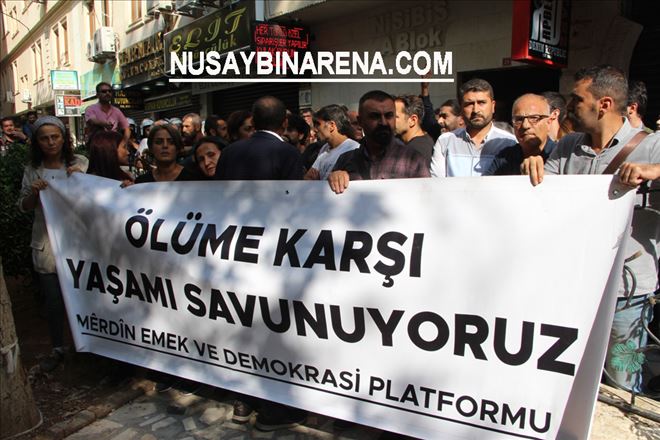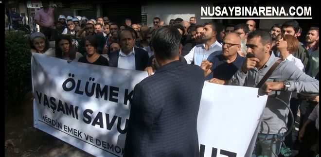 Nusaybin Eğitim Sen binası önünde bir araya gelen ve Aralarında HDP Milletvekilleri Pero Dündar, Ayşe Acar Başaran ve KESK Genel Başkanı Mehmet Bozgeyik´in de olduğu Mardin Emek ve Demokrasi Platformu üyeleri basın açıklaması yaptı.